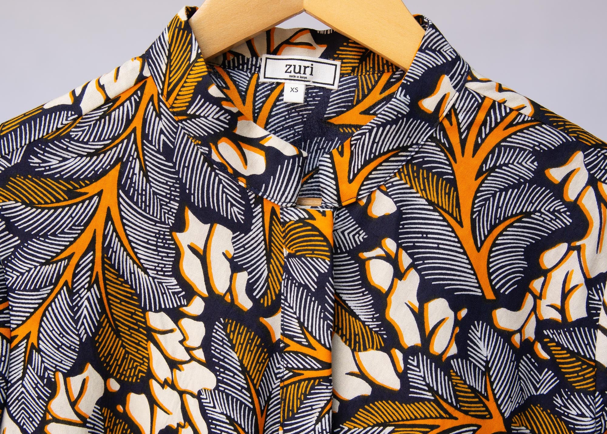- Color Notes: Navy blue, orange, white and cream