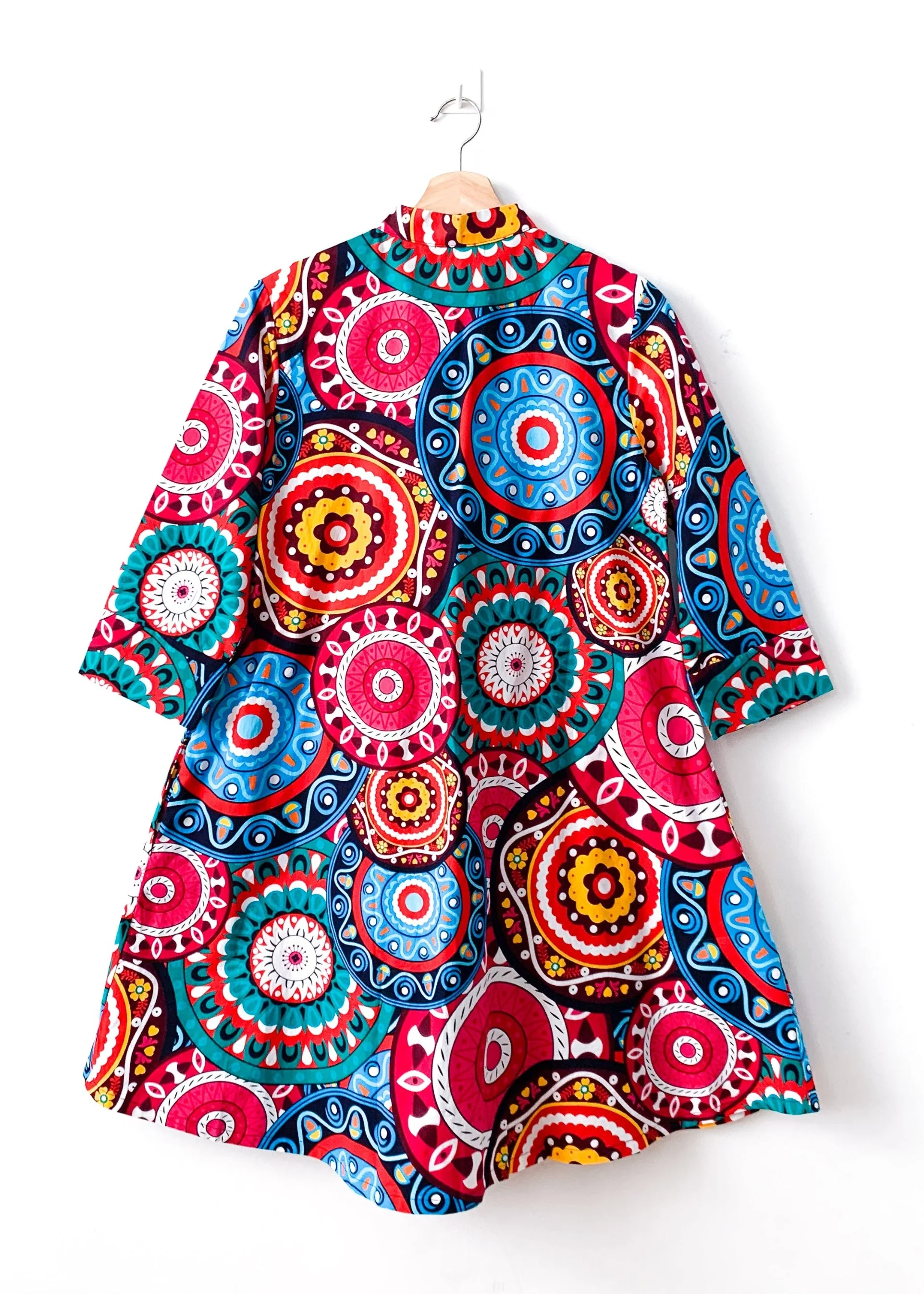 Find your center then twirl! Mandala is a joyful spin on balance and movement, with bold circular motifs that feel playful and energetic!